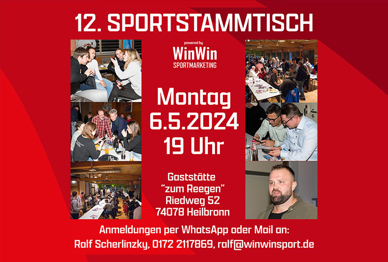 Am 6. Mai 2024 findet zum 12. Mal unser Sportstammtisch statt – ein Networking-Abend mit Sportlern, Trainern, Funktionären und anderen Personen rund um Spitzen-, Leistungs- und Vereinssport.